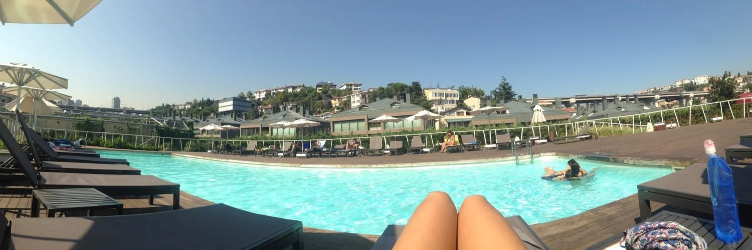 Sitting poolside on a rooftop in Istanbul, Turkey.
