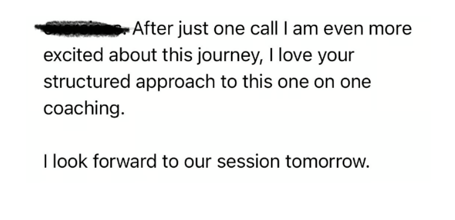 I’ve designed my remote career coaching framework to be simple and structured. I map it out precisely for you. My goal is to make the process of landing a remote job straightforward so that you can get more results in less time (and without all the overwhelm). And dare I even say, a little fun or exciting? Here's an email from one of my recent 1:1 remote career coaching clients:
